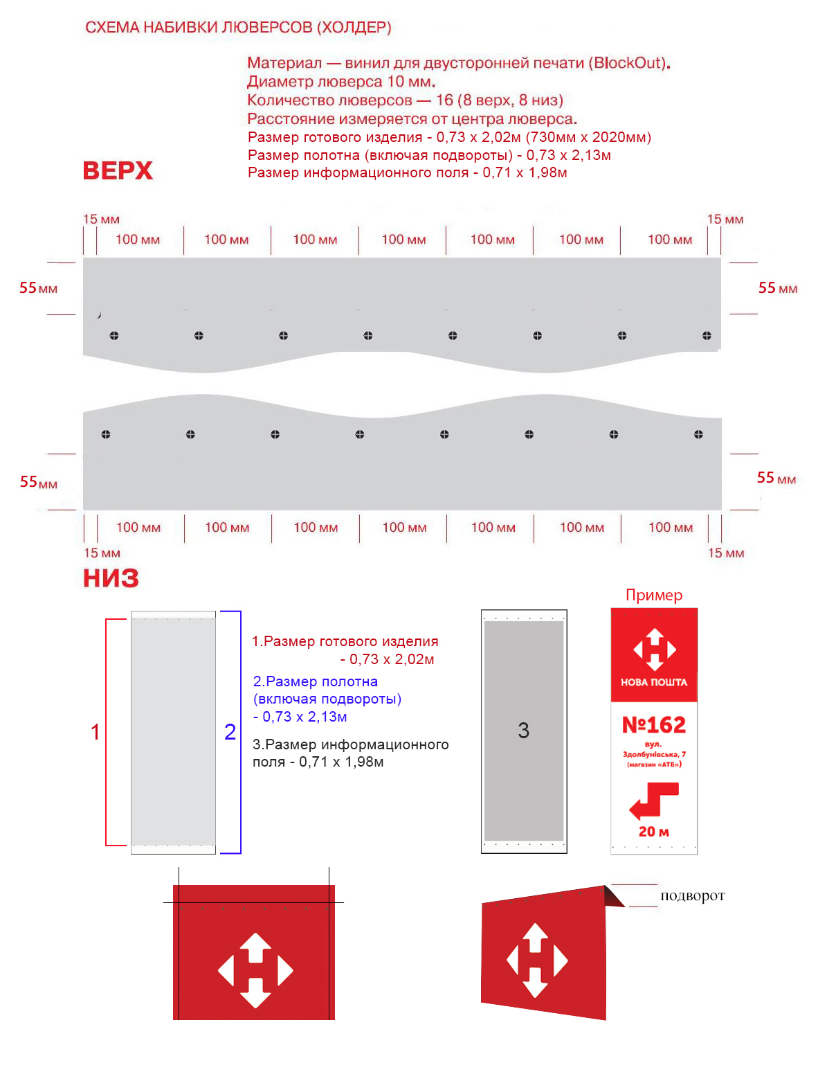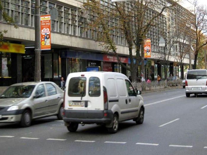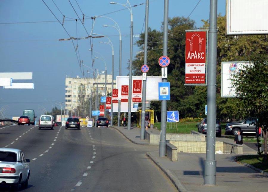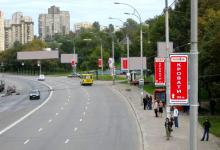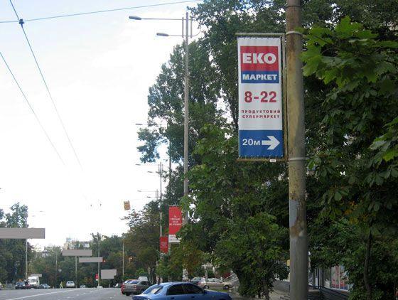 Holder is a quite popular advertising construction, which is a vertical, two-sided banner on a vinyl base with the size of 0,73х2,02 meters. Banners are fixed by means of special brackets on the street-lights along the road.